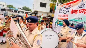 आज़ादी का अमृत महोत्सव के अंतर्गत संचालित “हर घर तिरंगा” अभियान को जन-जन तक पहुँचाने, राष्ट्रीय ध्वज के सम्मान को और अधिक प्रबल बनाने तथा राष्ट्रप्रेम की भावना को जागृत करने के उद्देश्य से, पुलिस अधीक्षक अलीराजपुर श्री भगवत सिंह विरदे के निर्देशन में दिनांक 13 अगस्त 2025 को अलीराजपुर पुलिस बैंड दल द्वारा बस स्टैंड अलीराजपुर में एक भव्य एवं मनमोहक सांगीतिक प्रस्तुति दी गई।।