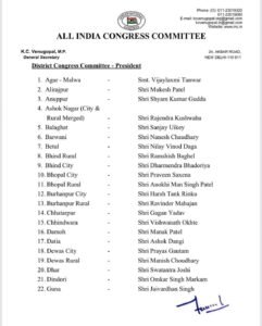 आल इंडिया कांग्रेस कमेटी ने जारी की मध्यप्रदेश कांग्रेस अध्यक्षों की सुची!!