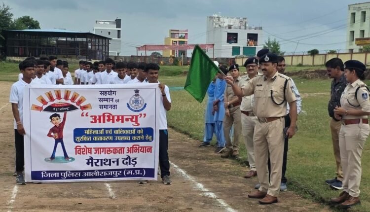 आज दिनांक 30 सितम्बर 2025 को इस अभियान के तहत खेल परिसर अलीराजपुर में मैराथन दौड़ का आयोजन किया गया। कार्यक्रम का शुभारंभ पुलिस कप्तान अलीराजपुर श्री रघुवंश कुमार सिंह द्वारा किया गया। उन्होंने दौड़ में उपस्थित स्कूल छात्रों को संबोधित करते हुए कहा कि महिलाओं और बच्चीयों का सम्मान करना, उनकी सुरक्षा करना और समाज में सुरक्षित वातावरण बनाना प्रत्येक नागरिक का दायित्व है। उन्होंने छात्रों को यह भी बताया कि जब बच्चे अभिमन्यु की तरह समाज में जागरूकता और सुरक्षा का संदेश फैलायेंगे तभी “अभिमन्यु-3” अभियान अपने वास्तविक उद्देश्य में सफल होगा।